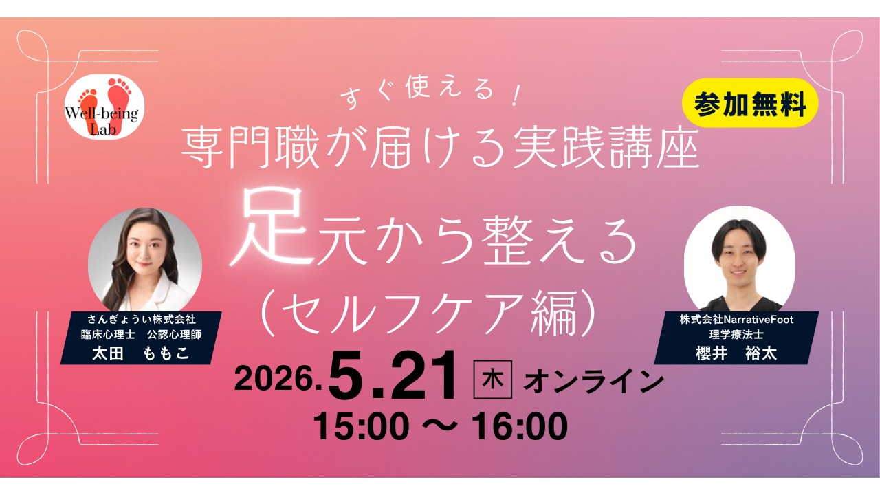 5月は環境変化の疲れが表面化しやすい時期です。本セミナーでは、心理士が「足元から整えるセルフケア」をテーマに、立ち仕事の現場ですぐ実践できるストレスマネジメント術をお届けします。安全配慮義務と自己保健義務の基本を押さえたうえで、通勤中や業務中の移動がそのままケアになる「歩くマインドフルネス」を体験していただけます。さらに、変化に即応する「OODAループ」の考え方を活用し、明日から職場で実行できる小さなアクションを決める実践型の講座です。