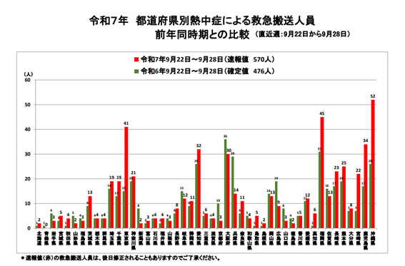 出典:総務省消防庁|全国の熱中症による救急搬送状況 令和7年9月22日〜9月28日(速報値)