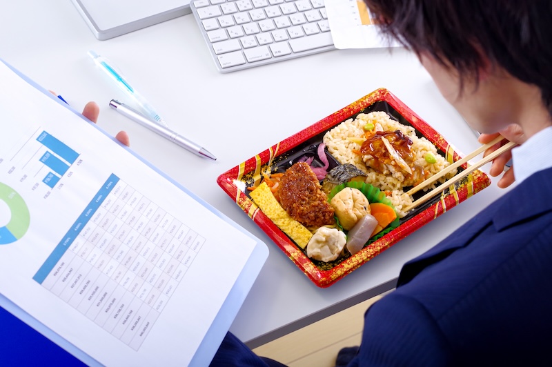 長時間労働では、夕食を適切な時間に食べることはできません。夕食が遅くなれば翌朝、胃がもたれていたり、空腹になっていないことなどから朝食を欠食し、ブランチのような食事でまた欠食し、夕食が遅れ、食事がさらに乱れていきます。そして、いつしか簡単に食べられるものを、適当な時間に食べるようになっているのが、今の働く人に多い食事のとり方です。